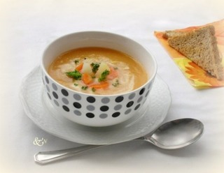 Zum Schluss das Mehl mit Creme fraiche abrühren und die Suppe damit binden.